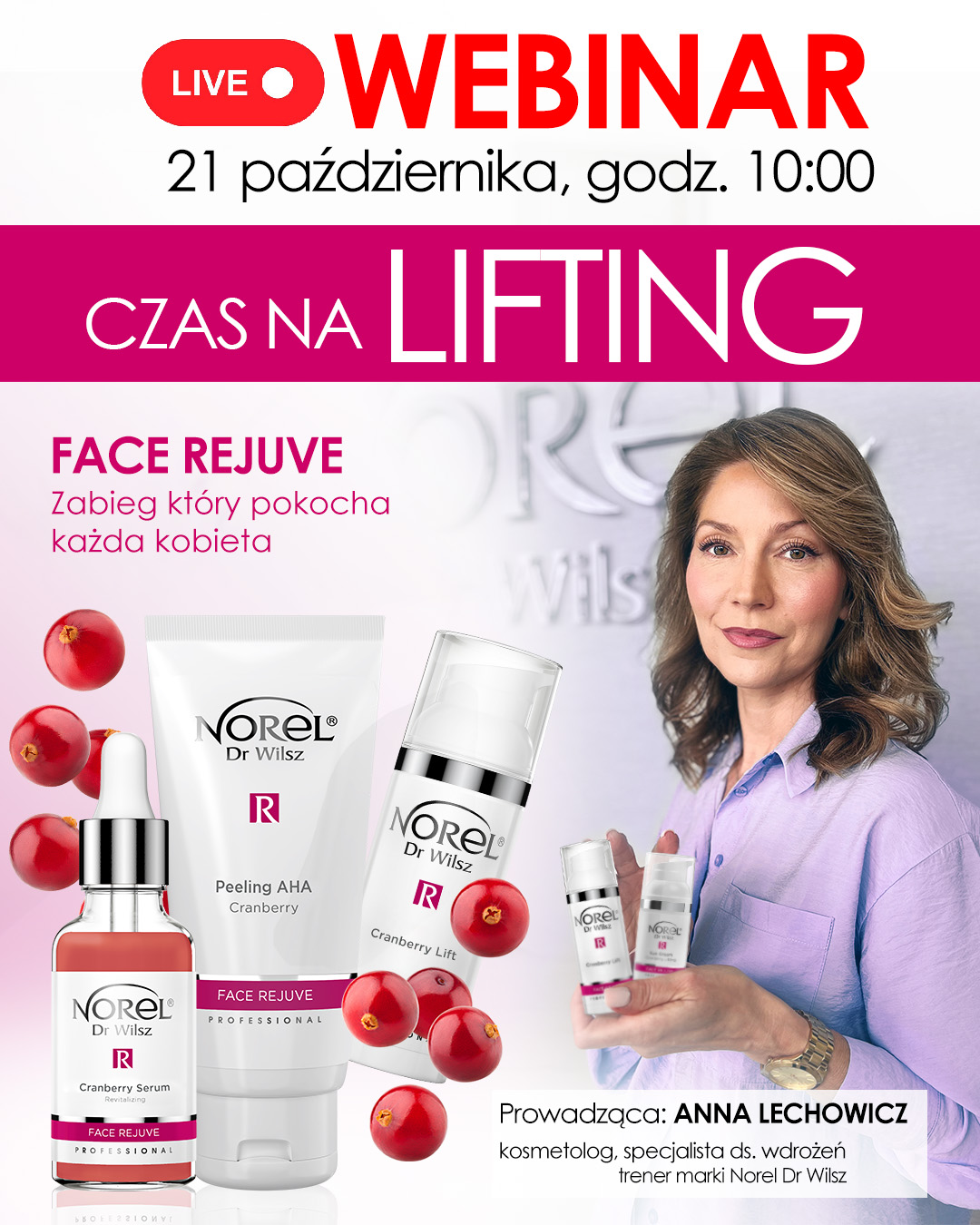 Podczas spotkania poznasz wyjątkowy zabieg Face Rejuve – ŻURAWINOWY LIFT, który: